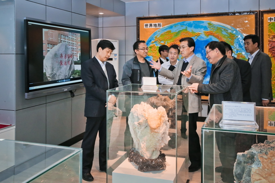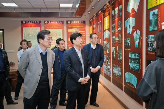 座谈会前,武军一行参观了我校校园、植物化学省级重点实验室、灾害监测与机理模拟省级重点实验室、地质地貌展厅、大气质量监测站以及校史馆。